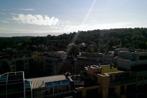 Gelegen mitten in der Südstadt bedeutet Wohnen im CSH: man wohnt nahe am Loretto-Viertel und am Französischen-Viertel mit VHS, Kneipen, Cafés, Läden und allem, was man sonst noch zum Leben braucht. Durch die Lage am Rand der Stadt ist man schnell draußen in der Natur: an der Steinlach entlang oder hoch zum Bergfriedhof. Die Haltestellen in der Hechinger Straße gewährleisten eine gute ÖPNV-Anbindung, wodurch die Universität und der Bahnhof gut erreichbar sind. Auch zu Fuß ist man in 10 Minuten am Bahnhof und mit dem Fahrrad in 5 bis 10 Minuten in der Innenstadt. Leben im CSH bedeutet Wohnen und Leben in gemeinschaftlicher Wohnatmosphäre, mit der besten Aussicht Tübingens von der Dachterrasse!
