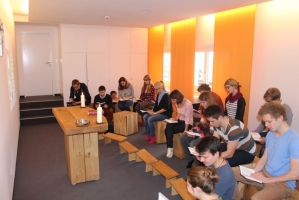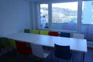 - Im Erdgeschoss befindet sich außerdem ein Musikzimmer sowie ein kleinerer und ein größerer Lern- bzw. Gruppenraum zur gemeinschaftlichen Nutzung.