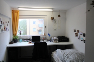 - Monatliche Warmmiete beträgt ab dem Sommermester 2024 296,50€ für ein kleines und 327,50€ für ein großes Zimmer, inklusive Internet, Fernsehanschluss auf dem Zimmer, GEZ.