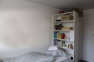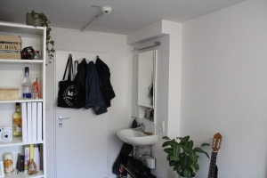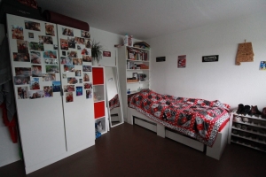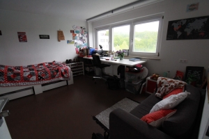 - Auf den meisten Stockwerken gibt es 12 kleinere Zimmer (ca. 11m²) und 3 größere Zimmer (ca. 16m²). "Neuzugänge" erhalten in der Regel ein kleines Zimmer, die größeren werden stockwerksintern vergeben.