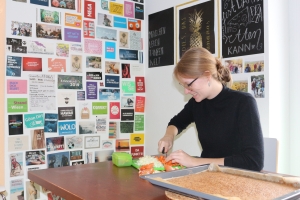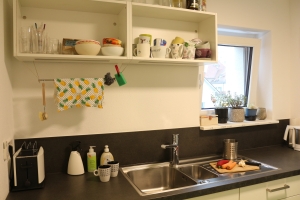 - In jeder WG befindet sich eine Küche und ein gemeinsames Ess-/Wohnzimmer.