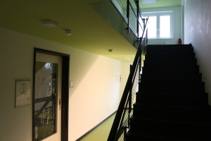- 32 Student:innen wohnen und leben in 7 Wohngemeinschaften mit je 3-5 Zimmern.